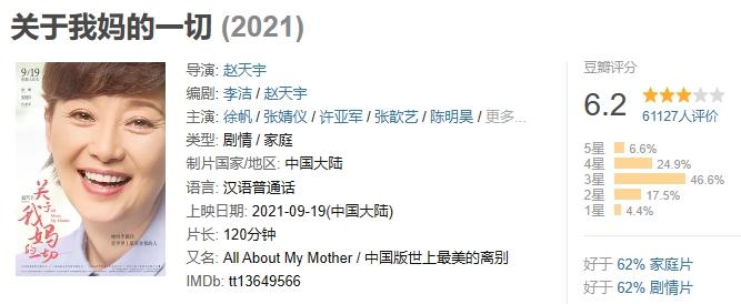 比如,徐帆主演的《关于我妈的一切》,翻拍自韩国电影《世上最美的离别》。