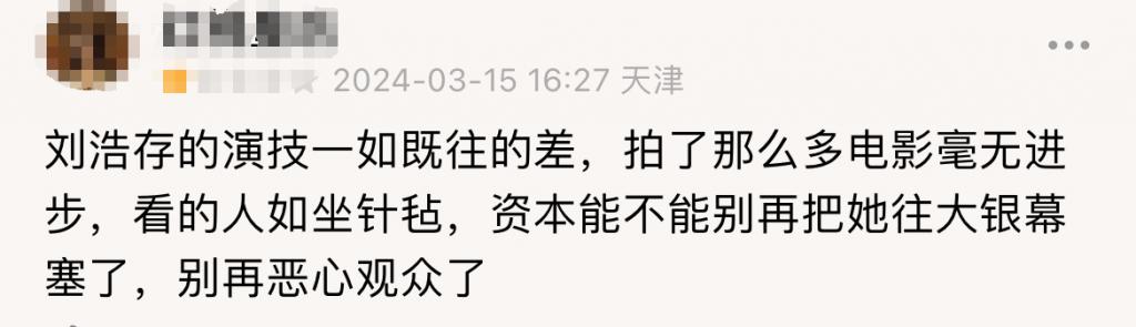 反观刘浩存的表演,和层次感完全没有任何关系。