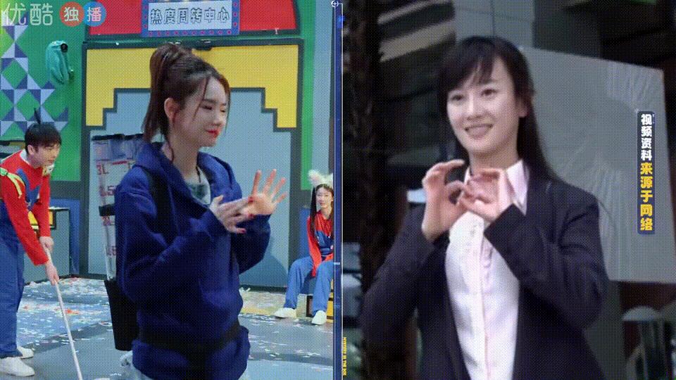 最近戚薇在综艺里,复刻了《夏家三千金》的经典比心场景