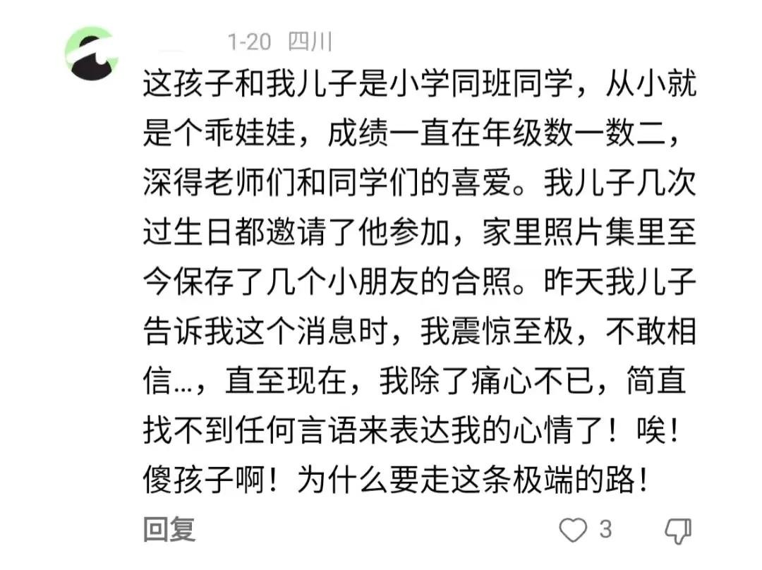 陈立人的小学同班同学家长也对此感到震惊。他们回忆起陈立人小时候的点点滴滴,他积极参加同学组织的活动,成绩一直排在年级一二名,老师和同学都喜欢他。然而,他们也无法理解,为何这样一个乖娃娃会犯下如此严重的罪行?