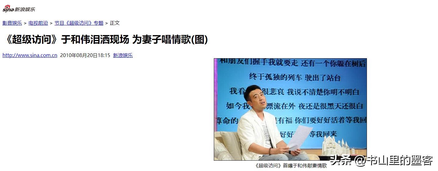 新浪娱乐:《超级访问》于和伟泪洒现场 为妻子唱情歌