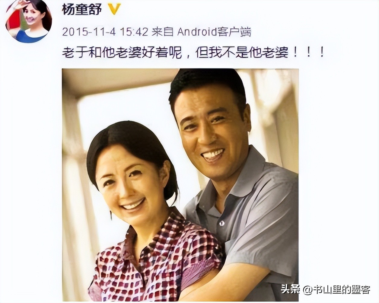 于是越来越多杨童舒就是于和伟现实中的妻子这一话题开始传播,甚至有些文笔好的网友,将两人之间的事情说的有鼻子有眼的。