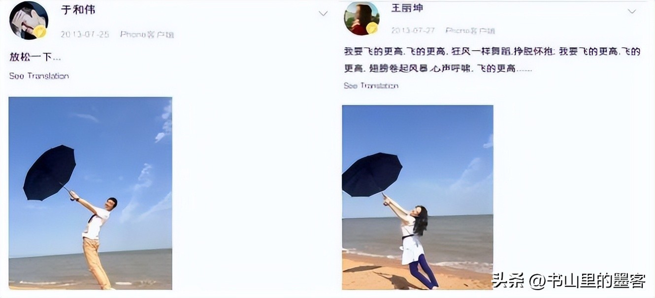 当时于和伟和王丽坤的绯闻在网上传的沸沸扬扬,甚至朋友圈中发的日常照片都透露着绯闻的气息。