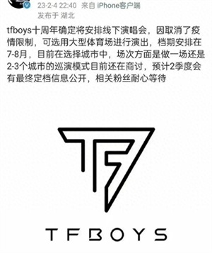 十周年不仅有演唱会还是大型演唱会!甚至不只有一场!!tfboys团粉喜不自胜,可惜她们还没开心几天就迎来了一个令人沮丧的消息,开完演唱会就正式解散!!