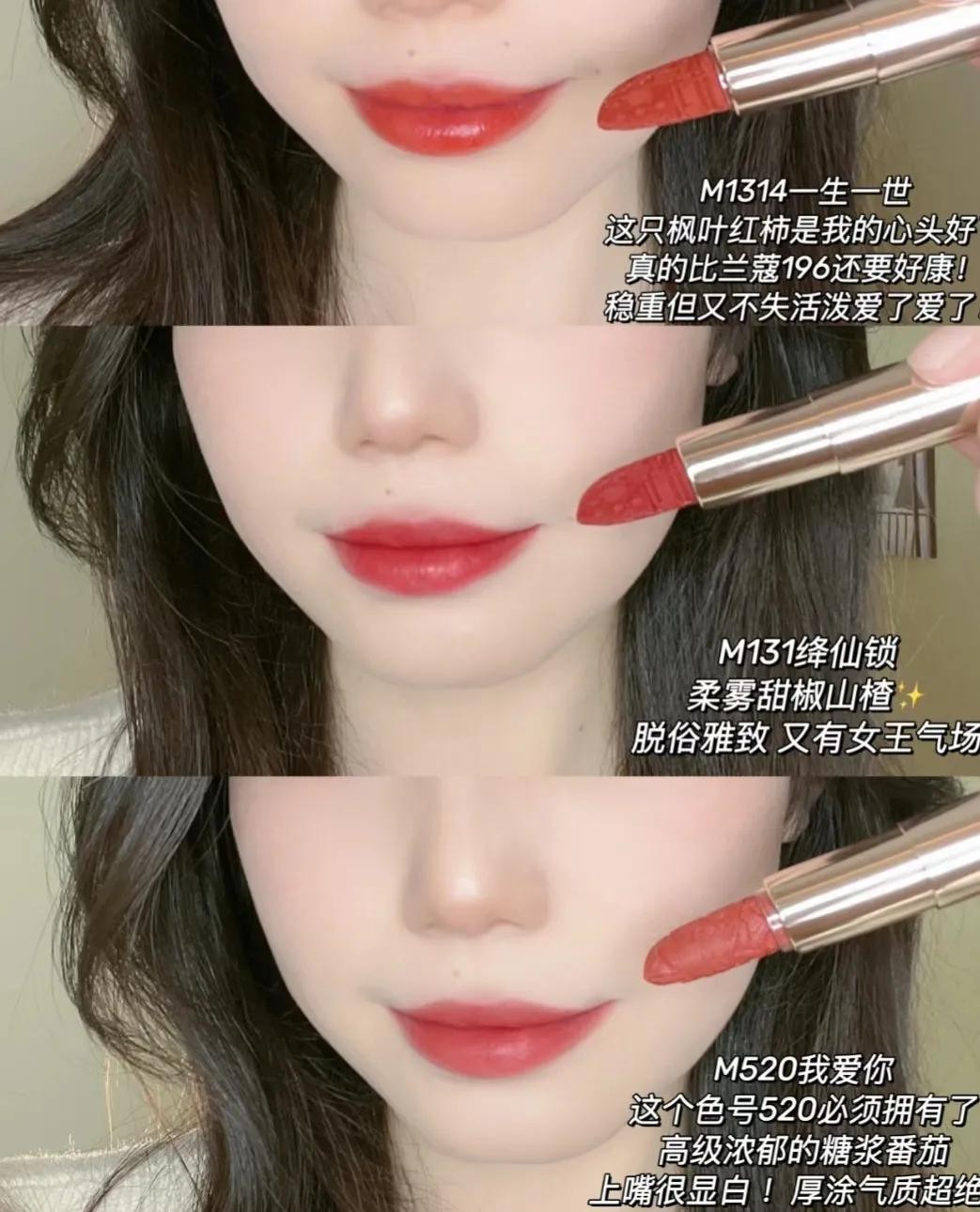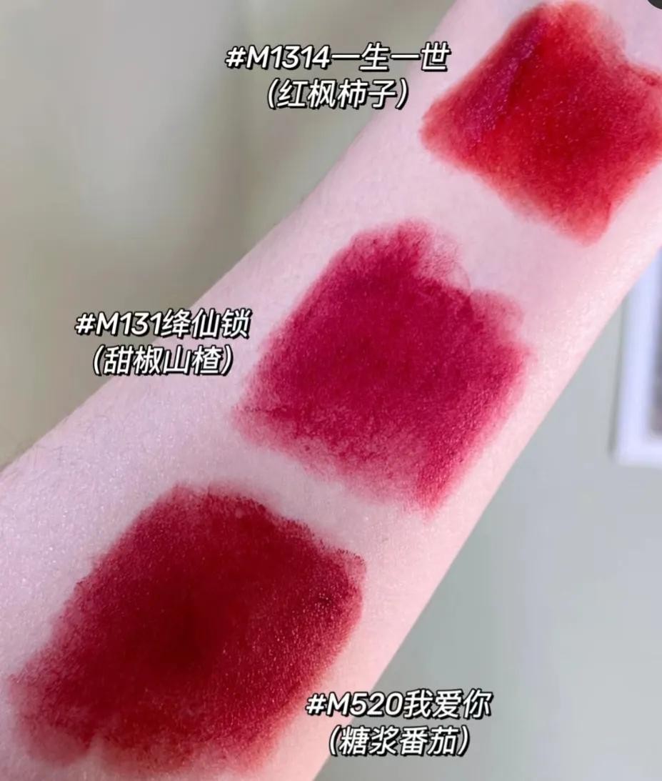 最后这款M1314口红橘调更多的红枫柿子色,很适合春夏!