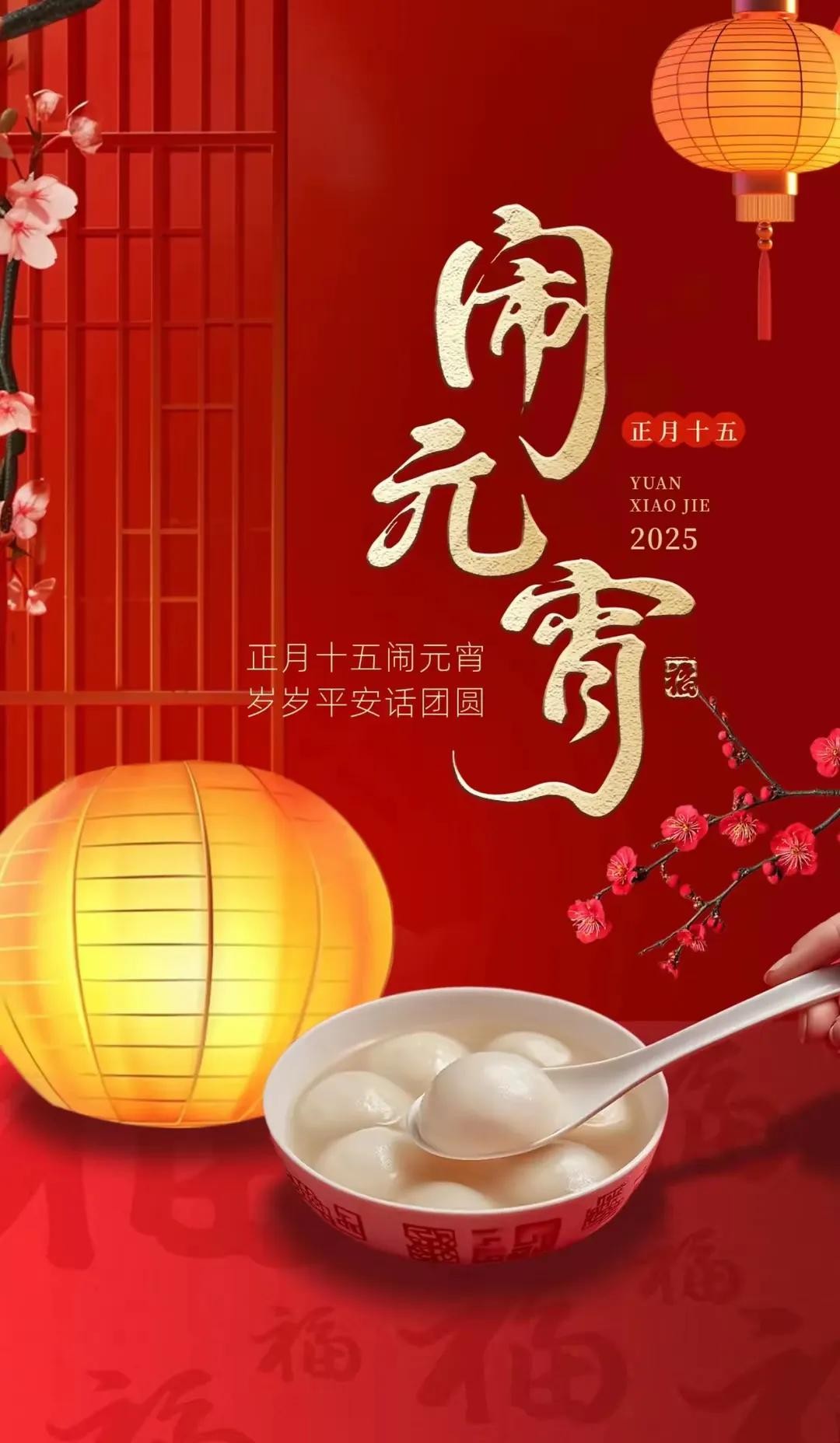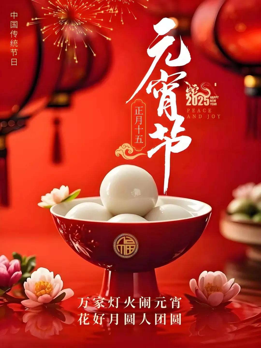 2025正月十五元宵节祝福图片。祝愿平安喜乐元宵节开心快乐