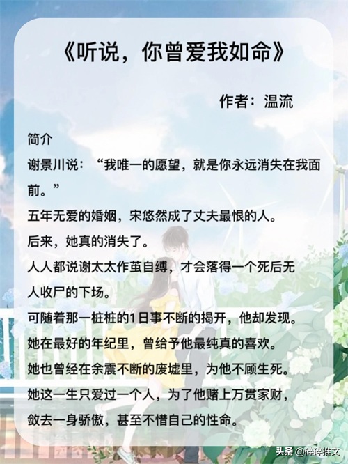 2.《听说,你曾爱我如命》作者:温流