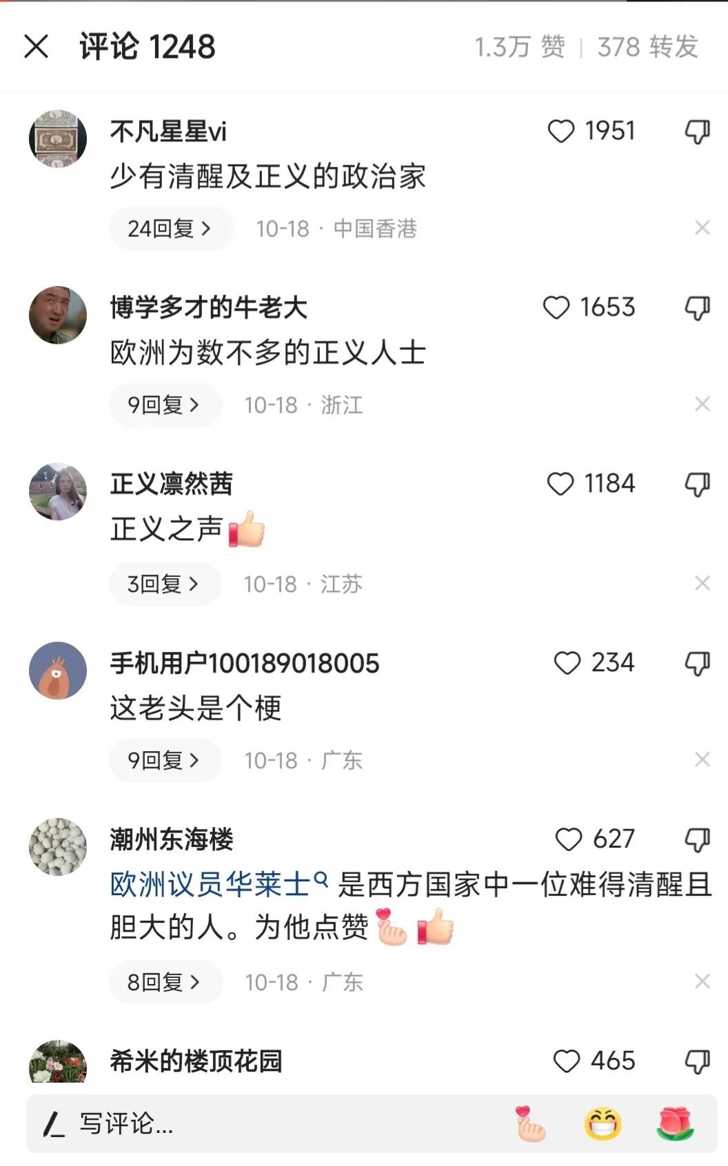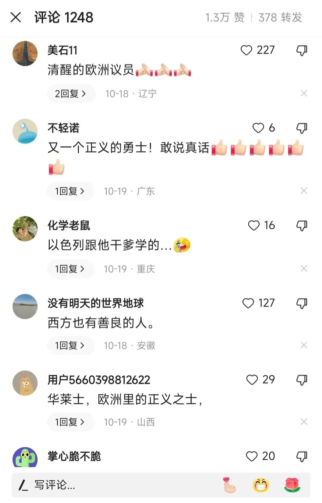 但在视频的下方却出奇的一致安静!那些天天叫嚣着支持以色列、乌克兰、为美西方擦鞋洗地的人一个都不见了,也没有一个敢出来发表意见了!为什么一直标榜自己“民主人权自由”的西方面对华莱士的质疑和提问,那些支持美国以色列的人却悄无声息了呢?它们在怕什么?它们真的有民主人权自由吗?