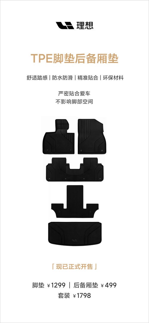 TPE脚垫后备箱垫,脚垫1299元,后备箱垫499元,套装1798元,基础配件,同样很实用。
