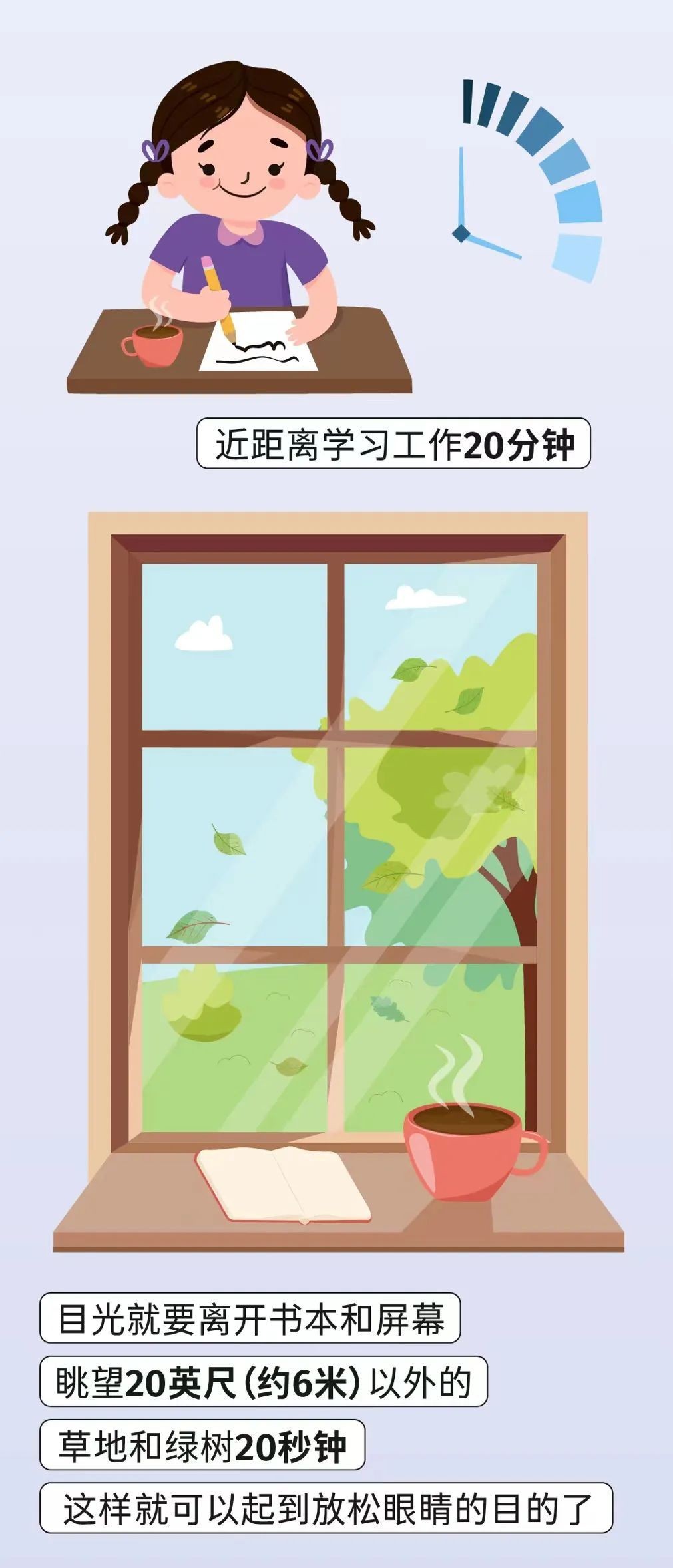 人人都想拥有好视力。那么如何才能保护我们的眼睛呢?有个秘诀要牢记,简单记忆就是“20-20-20”法则~大家一起通过改善用眼习惯来有效防控近视吧。