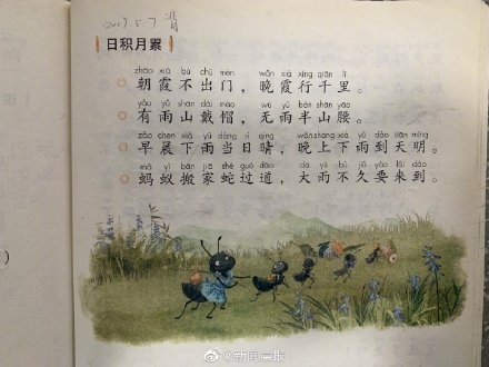 小学语文蚂蚁搬家要下雨被质疑不科学 出版社回应:将研判