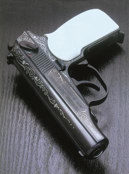 德国统一前后的东德曾出现混乱状态,这一时期出现了几种奇特的手枪。东德制的马卡洛夫(PM)手枪就是其中之一。该枪在东德国内进行表面处理,镶银,套筒左侧面雕刻东德著名枪厂吉姆森公司的铭文。
