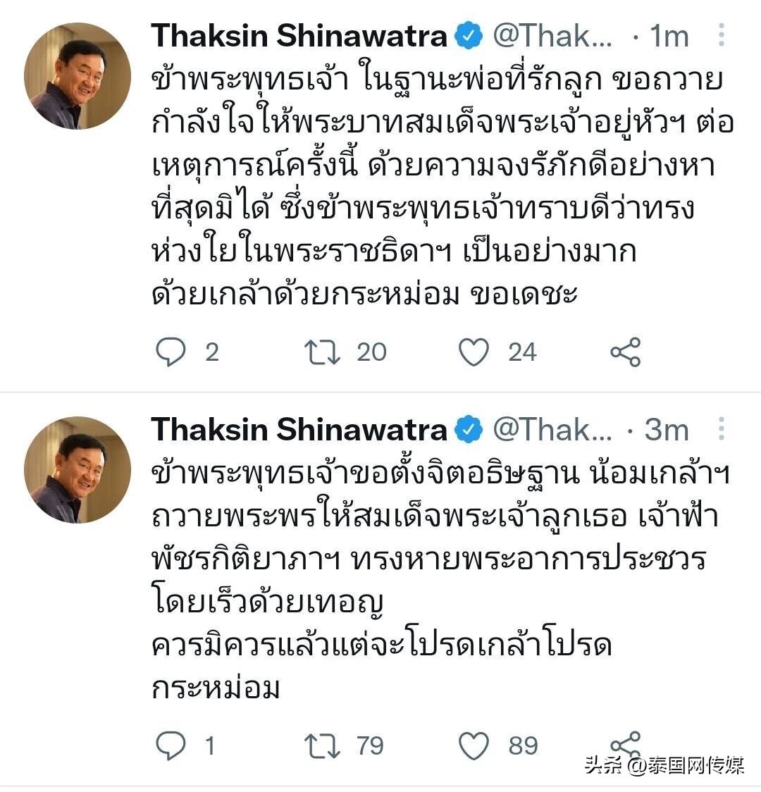 泰国前总理他信发帖为帕差拉吉帝雅帕公主祈福