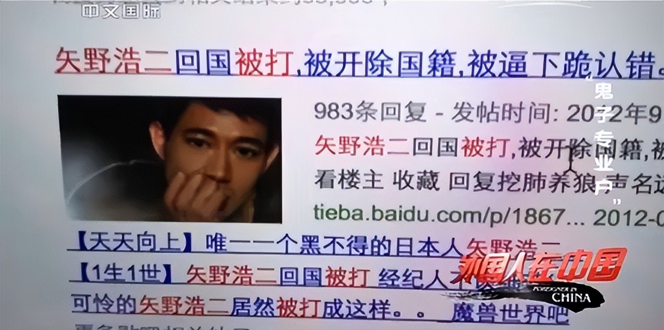 某一次节目录制过程中,一位嘉宾对着矢野浩二大骂,“你让我想起了九一八,想起了当年东北沦陷,想起了你们日本人的种种!”