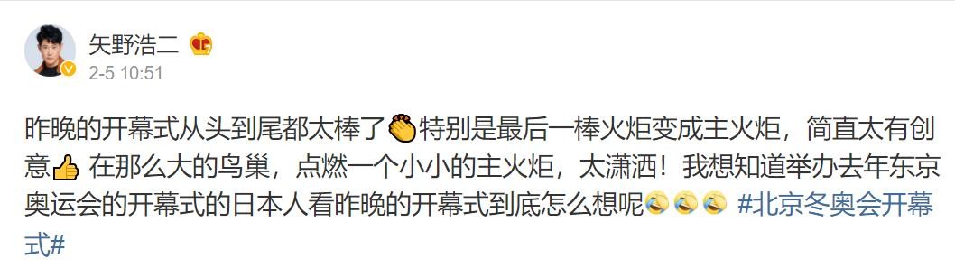 如今,中国举办冬奥会,浩二更是每天在社交平台上为中国加油,还内涵去年东京奥运会开幕式不好看,网友们纷纷被浩二的坦率真诚可爱到了。