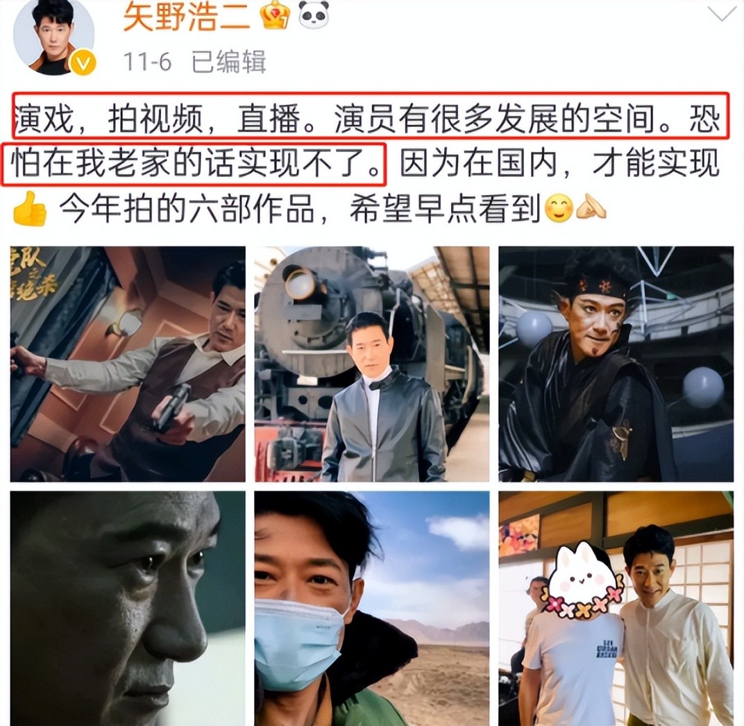 “演员有很多的发展空间,但在老家日本都完成不了,只有在中国才能实现。”这是浩二发在社交平台上的一段话,也表达了他对中国的感激之情。