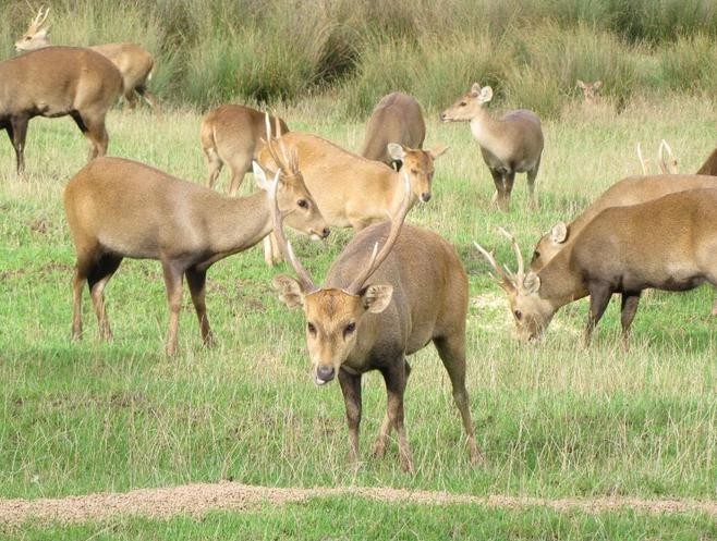 是一种热带小型鹿,主要在印度、缅甸、泰国,也生存在云南西部的耿马县和西盟县,腿比较短,行动时喜欢低头。体长1m左右,肩高在0.6-0.7m,体重约 50kg左右,体毛为漂亮的褐红色,身上有白色斑纹,背部的斑纹较体侧的更为明显些。