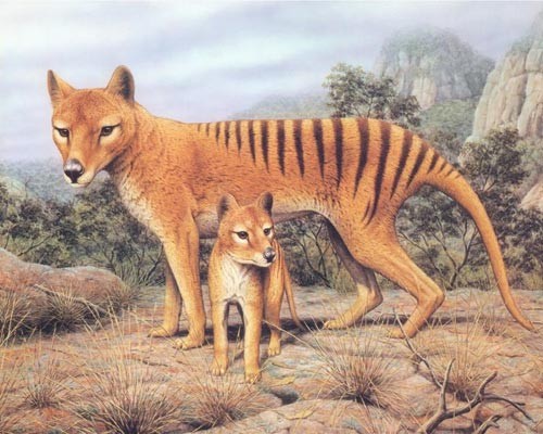 现代已知的最大有袋食肉动物,分布在澳大利亚和新几内亚,背部有斑纹,叫塔斯马尼亚虎、塔斯马尼亚狼。