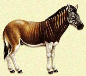 一半象斑马,一半象马,非洲最有名的灭绝动物之一,实际上是草原斑马的亚种,生活在南非基普省和桔色自由州的南部地区。
