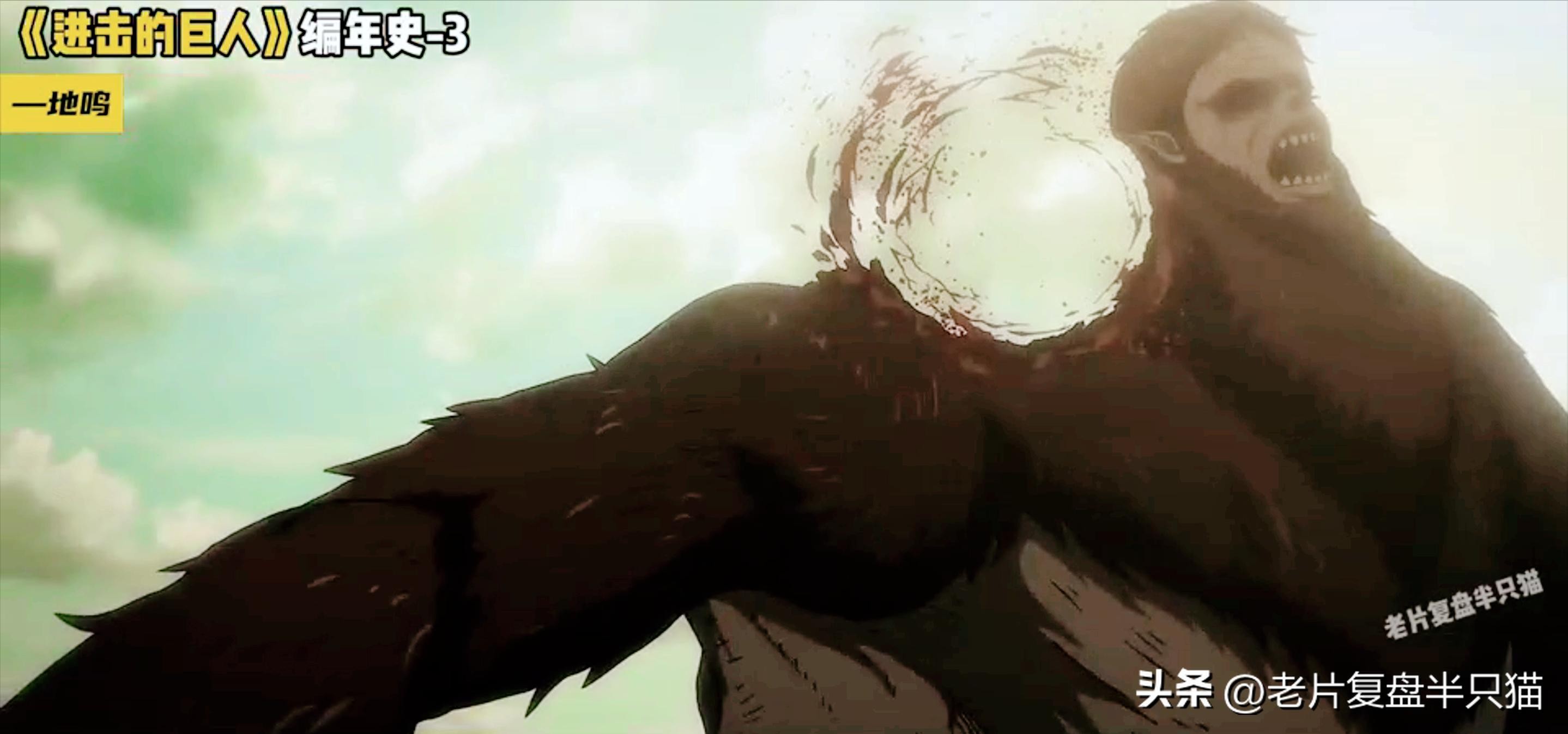 鄂巨人几乎被三笠和艾伦Zhi解,艾伦利用鄂巨人无坚不摧的牙齿,咬碎了战锤巨人的本体,拥有了战锤的力量