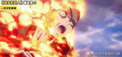 马莱船只想要赶来支援,阿尔敏变为超大型巨人,引发爆炸,半个港口瞬间淹没在火海之中