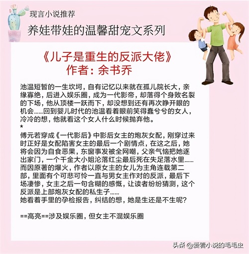 大家好,我是毛毛虫,今天推荐是5本养娃带娃的温馨甜宠文:强推《穿成反派他亲妈》,小包子很萌