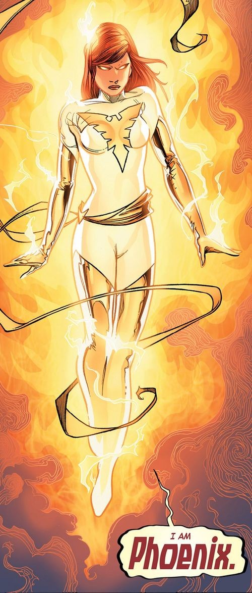 「她被命名为火之鸟──传说中的传奇生物,由催生出情感意识的种族的每一个星球的神话组成,皆在创世后的那一刻被提及。当火焰烧灼天堂,在无尽黑暗中带入光明并以生命划开苍穹,这生物是那一刻与奇妙、超然行为的体现,她是创造的热情,同时也是毁灭。她代表著开始与最终的终点,她被认为是吞噬最后残馀存在的火焰,从而确立下一个伟大的生命无尽轮转,来自燹中的灰烬将迸发出新的曙光,一个新的现实。她出生为瑞秋·安·萨默斯,但是她更适合被称呼为凤凰。」