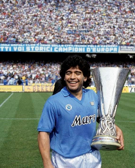 据统计,那不勒斯是球迷数量第4多的意大利足球俱乐部,排在尤文图斯、国际米兰和AC米兰之后。俱乐部历史上最辉煌的年代属于球王马拉多纳,马拉多纳是那不勒斯的象征和不灭的神话,他为那不勒斯赢得2次意甲冠军、1次意大利杯冠军、1次超级杯冠军和1次联盟杯冠军,可以说是马拉多纳让世人认识了那不勒斯这支球队。俱乐部已经将马拉多纳的10号球衣退役,球队历史上最后一位10号球员是同样来自阿根廷的索萨。