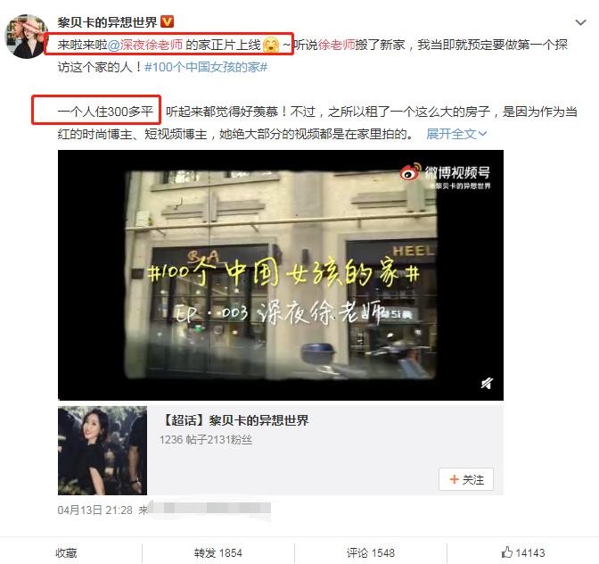 在寸土寸金的上海市中心,徐老师租了一个超过300平的大房子,日常就是请各位当红明星到家里做客。