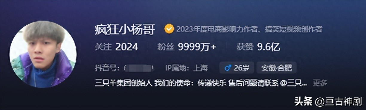 第一位——广受欢迎的网络主播疯狂小杨哥。