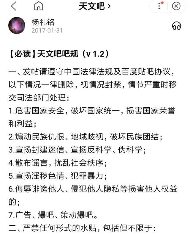 猫叔被撤职后,情绪比较低落。正好这个时候,我的朋友虎女皇刚刚做了宇宙吧吧主,之前那个不学无术的潘三虎被赶走了。于是,我就介绍猫叔去宇宙吧做吧务。猫叔当时还比较顾忌,毕竟天文吧这些年对待宇宙吧的态度很“凶”。虎女皇对猫叔说,没问题的,您过来吧。宇宙吧当时百废待兴,虎女皇也打算励精图治,好好改造一下贴吧,于是,一批天文吧吧主、吧务被引荐进宇宙吧,兼任宇宙吧的管理员。比如 普通替死鬼、钅寒、杨礼铭,还有很多人,大约八九个天文吧的管理员,都同时在宇宙吧做治理。