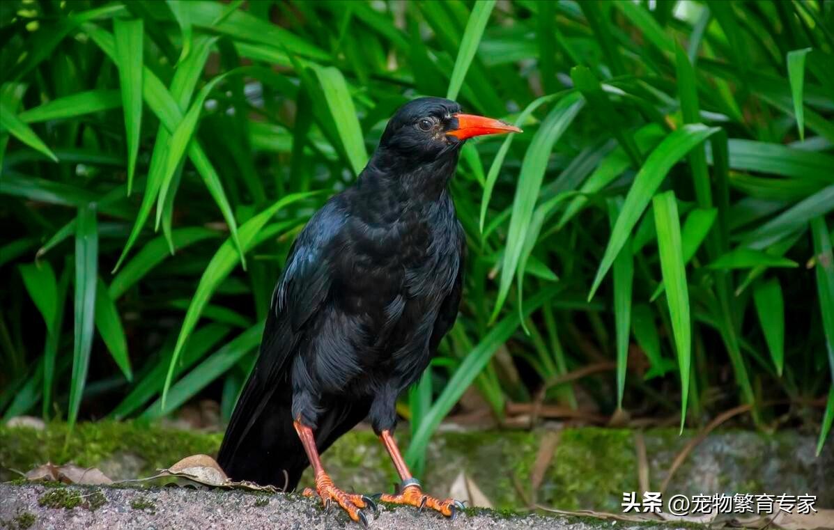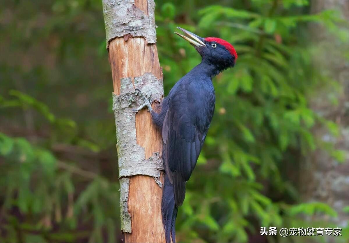 而且这种鸟的羽毛几乎全是黑色的,只有雄鸟的额头和头顶有一抹鲜艳的血红色,显得格外引人注目。