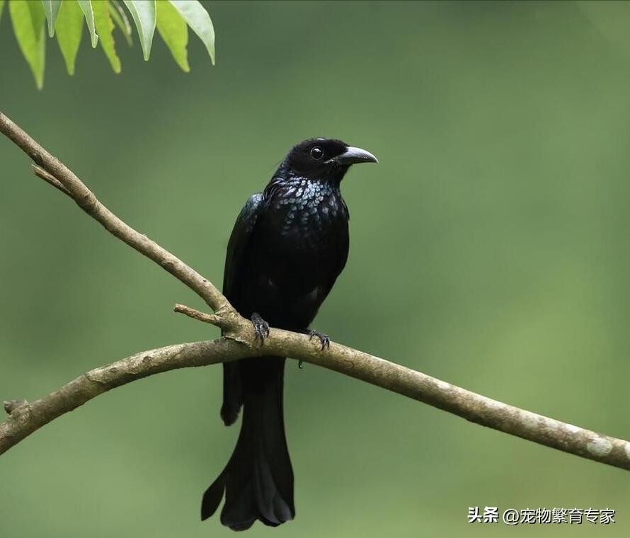 这种鸟全身黑色,羽毛带着蓝色的光泽。
