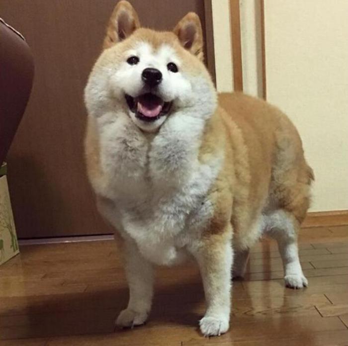 一名女子养了一只黏人的柴犬。刚开始时,柴犬的身材还算精瘦。随着女子对它越来越放松,柴犬开始发育了。一坨坨的肉就这样跑到了柴犬的身上。