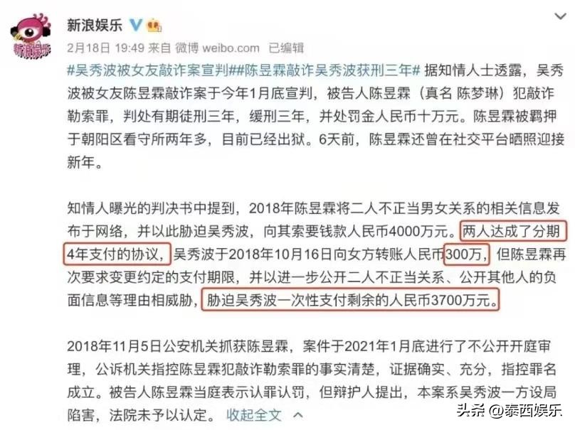 这个数字不仅远远超出了之前的支付金额,也超出了大多数人的想象。更严重的是,陈昱霖还威胁要公开爆料他们的关系细节,这无疑对吴秀波构成了巨大的威胁。