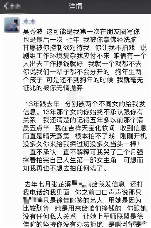 这段婚外情持续了7年之久,期间吴秀波一直保持已婚状态。直到2018年陈昱霖在社交平台的爆料中描述了这段关系的复杂性。