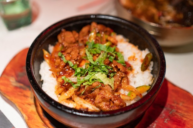 7. 泸州石锅拌饭:泸州石锅拌饭是一道以米饭、豆腐、肉类等食材为主料的传统菜肴,口感香糯、鲜美,搭配泸州特产的泸州老窝头更是美味。