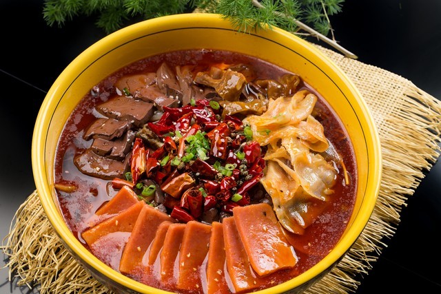 4. 泸州毛血旺:泸州毛血旺是一道麻辣可口的火锅菜肴,以牛肚、肥肠、豆皮等食材为主料,加入各种调料和辣椒煮熟,味道香辣,是泸州的代表性菜品之一。