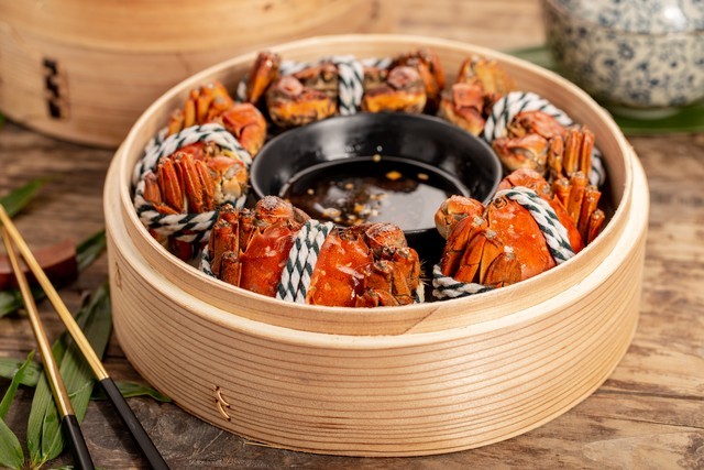 9. 泸州大闸蟹:泸州大闸蟹是一种以大闸蟹为主料的传统美食,肉质鲜美、口感醇香,是秋季时节的美味佳肴。