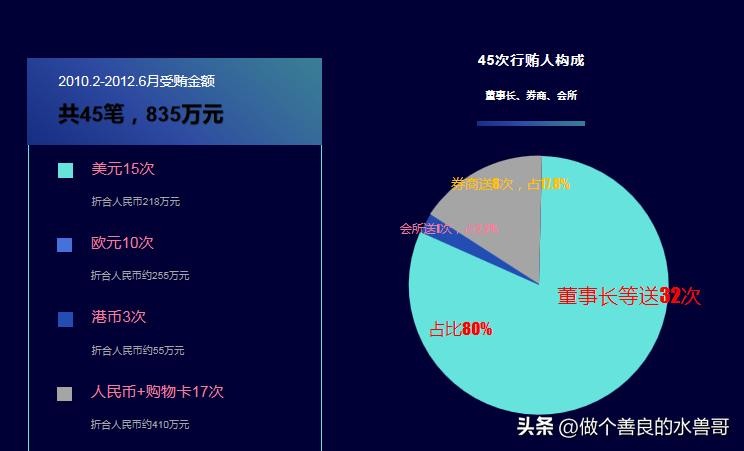 这里面,多数都是董事长亲自上阵,主动向孙委员“汇报工作”,45次中,董事长们送了32次。