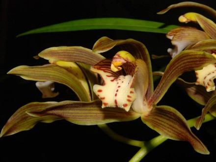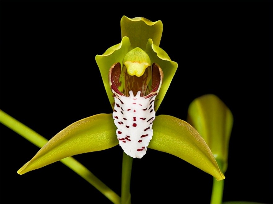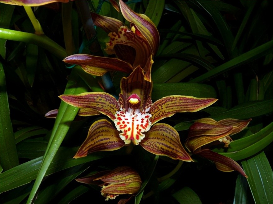 西藏虎头兰又被称为大花蕙兰、大花虎头兰,常附着于树干上或溪流间的岩石缝隙中生长。