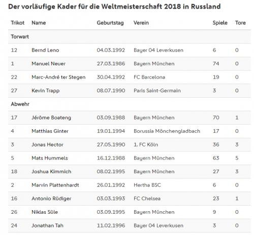 近日世界杯卫冕冠军德国队公布了参加2018年世界杯的国家队阵容大名单。