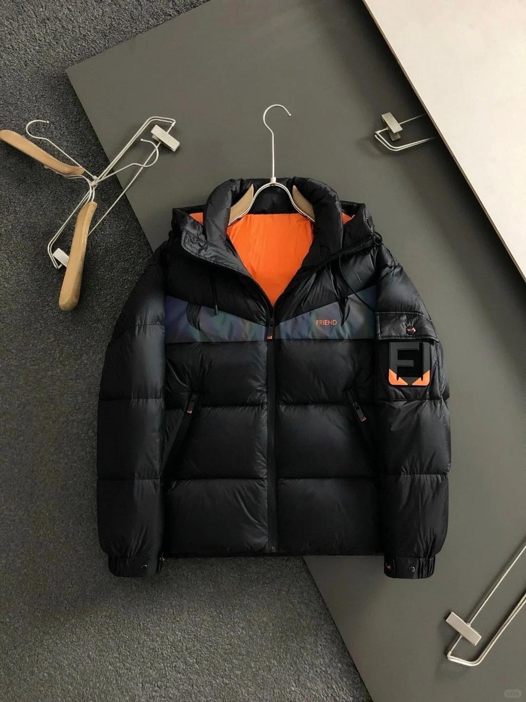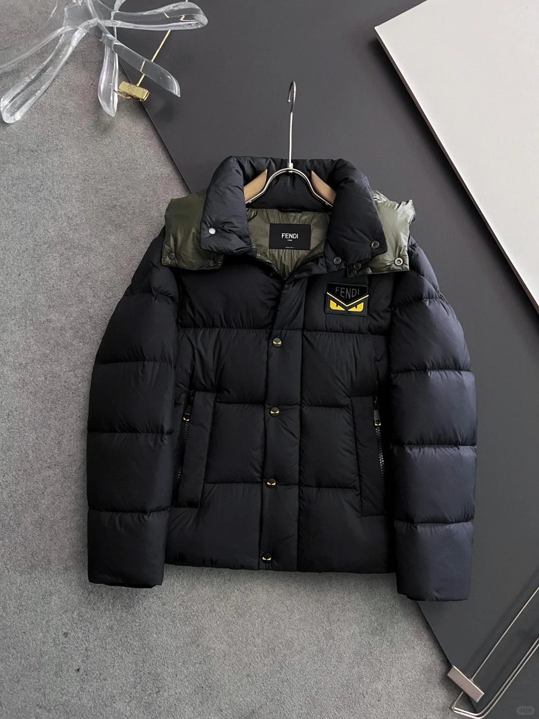 不可拆卸的兜帽设计给整体造型增添了几分阳光活力与动感时尚感,在强化保暖功能的同时也让穿着者看起来更加随性洒脱。从材质选择到设计风格,每一处细节都体现了芬迪对于品质与创新不懈追求的精神。这款羽绒服就像是一把寒冬利器,让每一位男士在低温季节也能自信展现个人风采,轻松应对户外探险或都市生活的各种挑战,在任何场合下都能够成为众人瞩目的焦点。