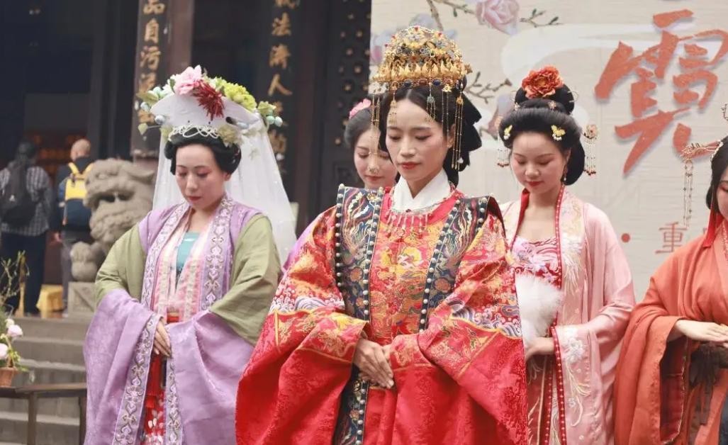 除了服装之外,头上的装饰、精致的发髻以及各种精美的配饰也必须与之相匹配,这样不仅能够彰显出女性的社会地位,还能体现出她们的内在气质。