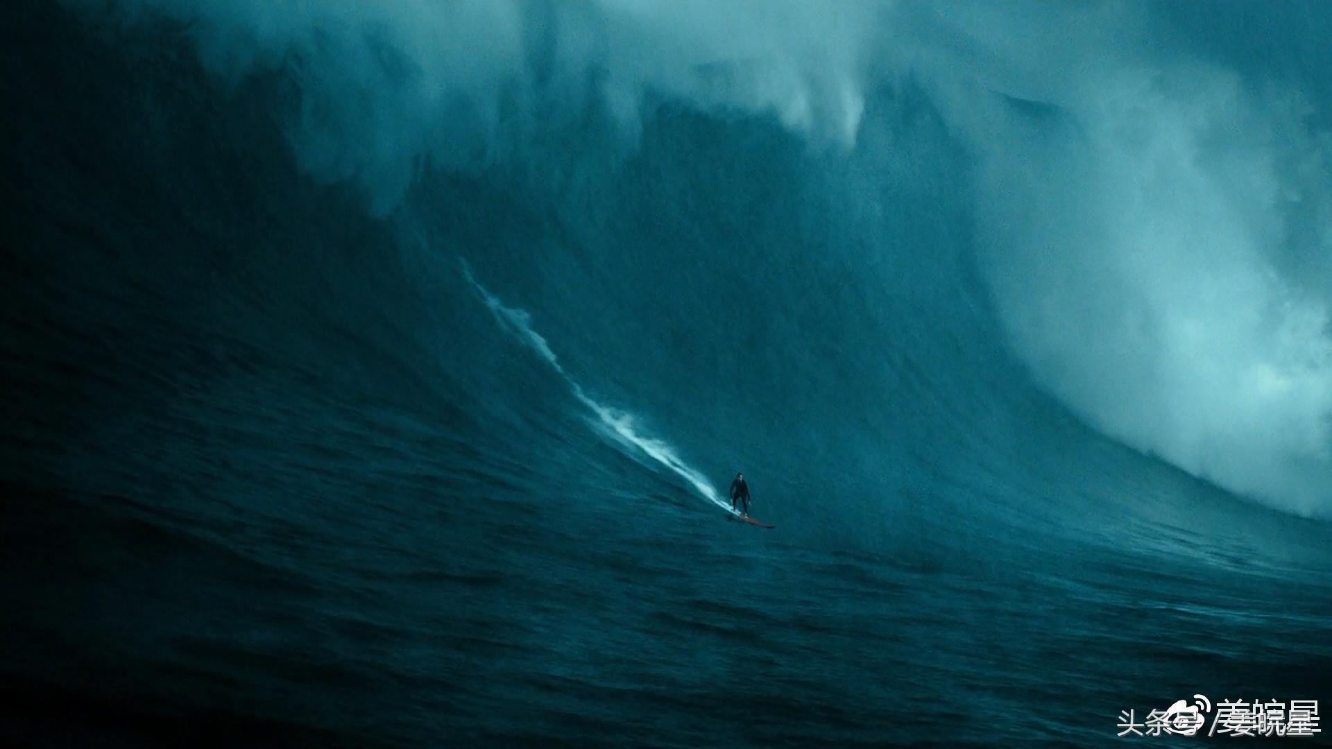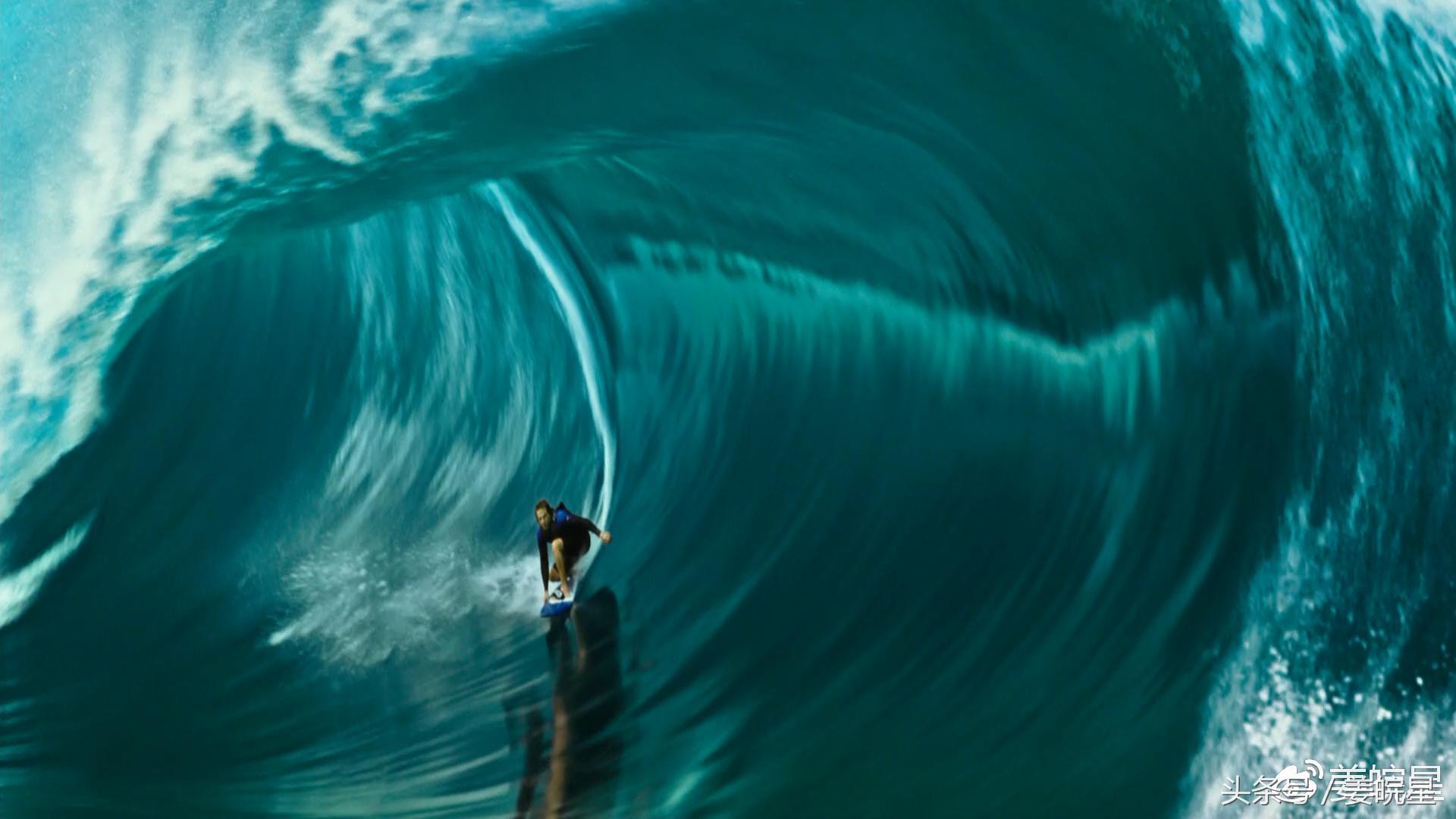 第4项为水之生灵,冲浪可能很多人觉得并没有什么危险,那是你只是在浅海边弱弱地体验下,真正的玩家是这样玩的, 所以,影片中合理地安排了男主被巨浪拍进海里,差点溺亡幸被博迪舍命救起的情节。