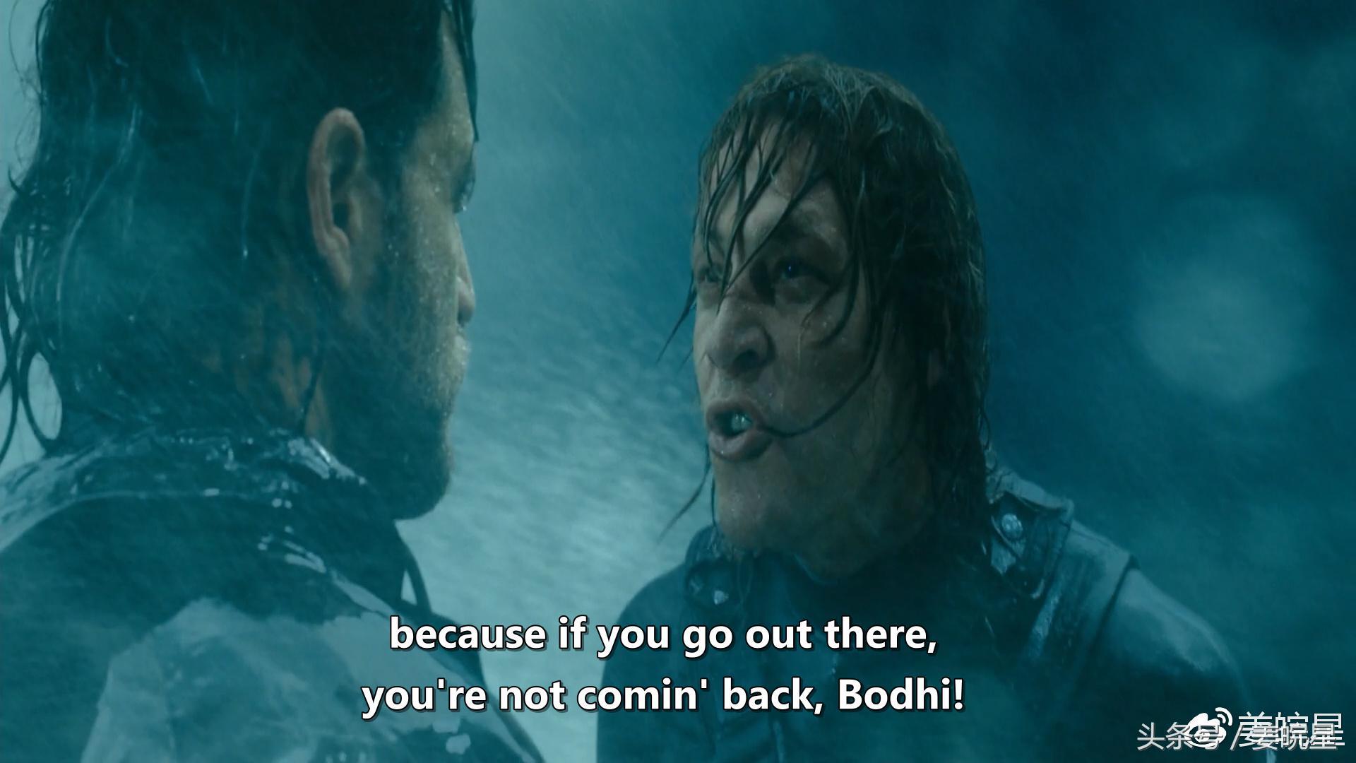 而影片的最后,博迪孤身一人,义无反顾地去挑战百米多高的巨浪的情节,也是首尾呼应,画上了圆,男主苦口婆心地劝阻博迪放弃挑战,可博迪却是一意孤行……