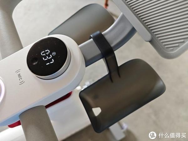 车身的前端有一体式大尺寸iPad支架,最大适配尺寸22cm,运动娱乐两不误。