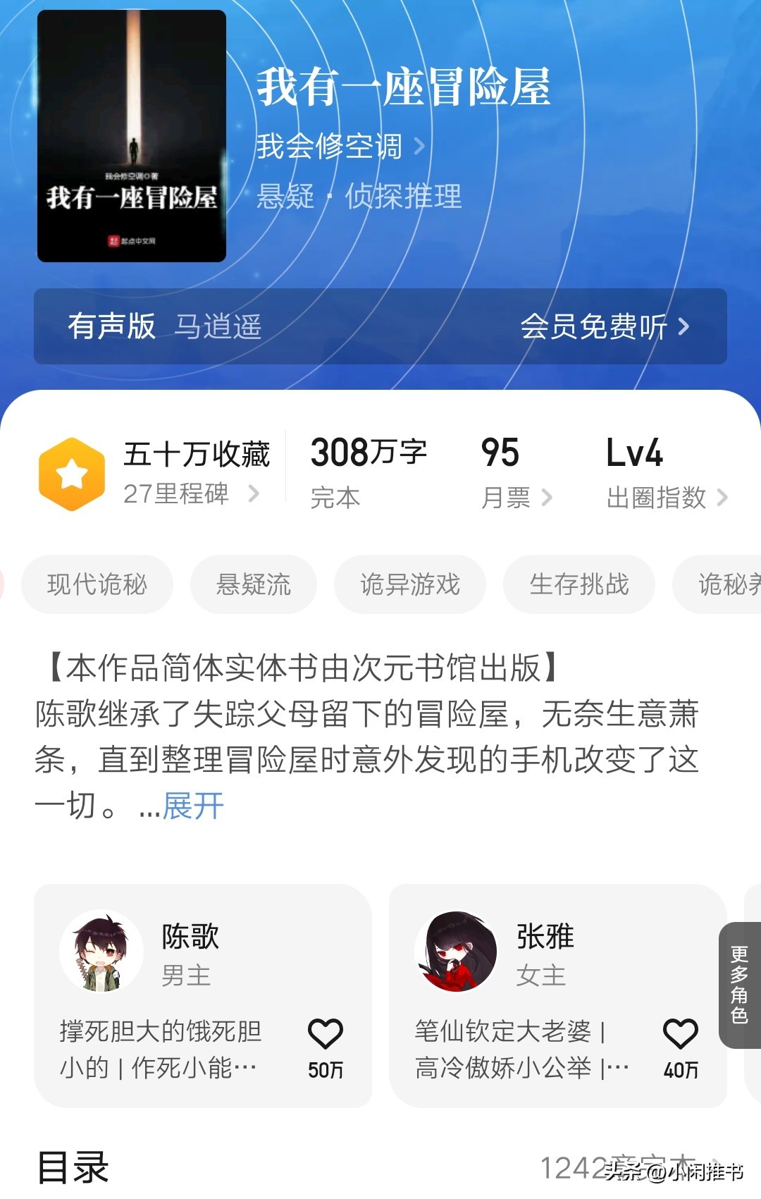 点评:我会修空调的成神之作,这本意外得让我看得进去!也许是爽点被get到了吧。也算另类的经营文,不过经营的是鬼屋,也蛮喜欢看游客在升级的鬼屋作死被吓~ 虽然说有这样那样的逻辑问题,但是在气氛设置上真的不失为一本可读的小说,半夜读完感觉背后凉凉的却意犹未尽。作者的我的治愈系游戏也是一绝。