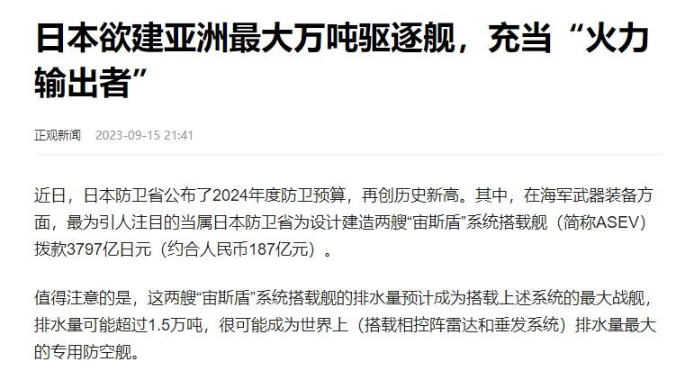 正观新闻-2023年9月15日-《日本欲建亚洲最大万吨驱逐舰,充当“火力输出者”》