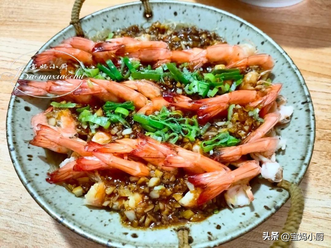 1,把粉丝加凉水浸泡至软。虾去头,挑去虾线,再开背至尾。大蒜去皮后拍扁剁成蒜末
